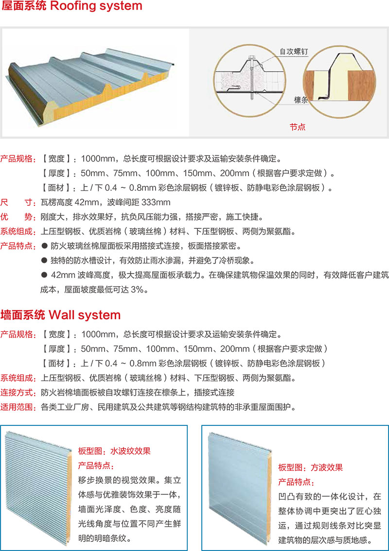 > 聚氨酯(PU)封边岩棉(玻璃丝棉)夹芯板